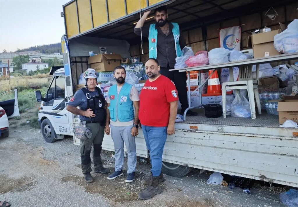 Dernekten yapılan açıklamada, bölgede vazife yapan işçi ve gönüllülere kumanya ve temel gereksinim gereçleri gönderildiği belirtildi.