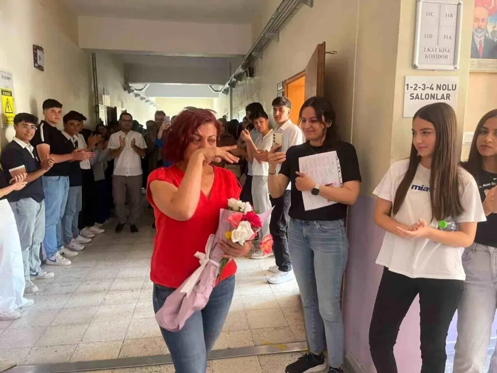 Okul hoparlöründen ‘Hatıran Yeter’ müziği eşliğinde yürüyen Pembe Mavuş gözyaşları ile emeklilik hayatına uğurlandı. – NİĞDE
