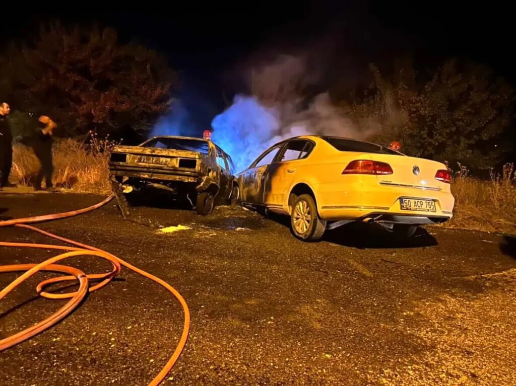 Nevşehir’de baş başa çarpışan arabalar alev aldı. Kazada 2 kişi yaralandı.